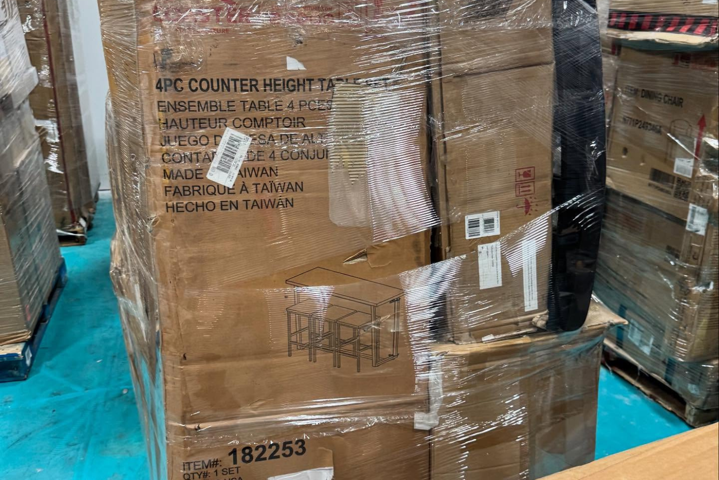 Home and office furniture pallets featuring customer returns and overstock items with strong resale potential across multiple markets.