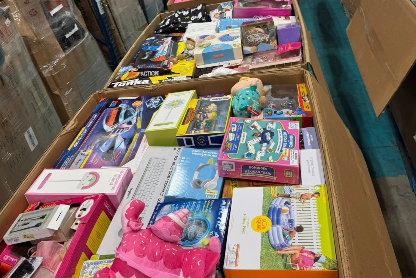 Surprise assortments of mixed merchandise sourced from AMZN and major retailers, offering strong value and resale potential.